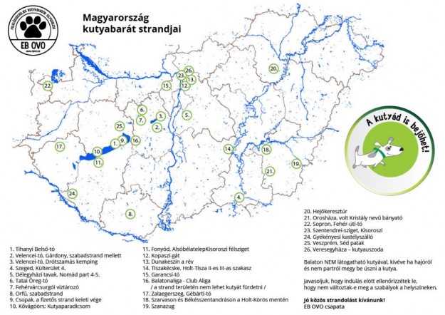 Az EB OVO Egyesület jóvoltából elkészült egy térkép, amelyen a magyarországi kutyabarát strandokat