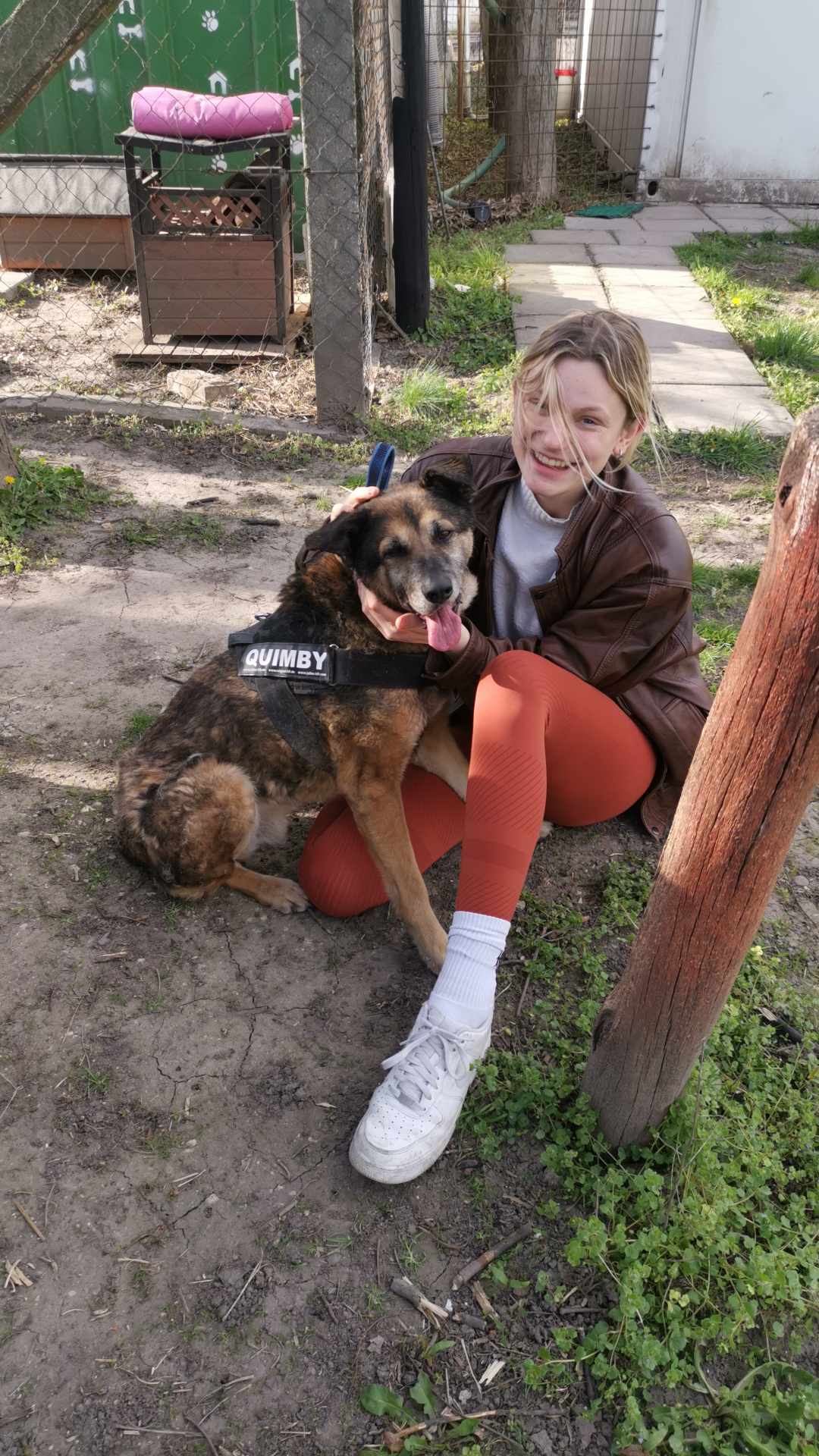 Several of you asked us to share photos of the young woman who adopted a 15-year-old dog. Well, here they are: Johanna and Quimby . When a 15-year-old dog who has lived through a lot regains hope, because he realizes that something is definitely going on here, we notice it. We saw this change in the Old Man, too. Every time he spent time on the dog-run, he watched the opening of the gate and waited only for her. The girl finally came for him and took him with her for good—she did not disappoint him. May you be very happy for a long time, dear Quimby Papa! Thank you, Johanna, for giving more dogs like Quimby a chance!
