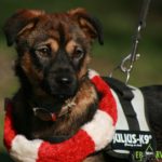 Ügyesen sétál pórázon és nagyon élvezi a nagy sétákat.