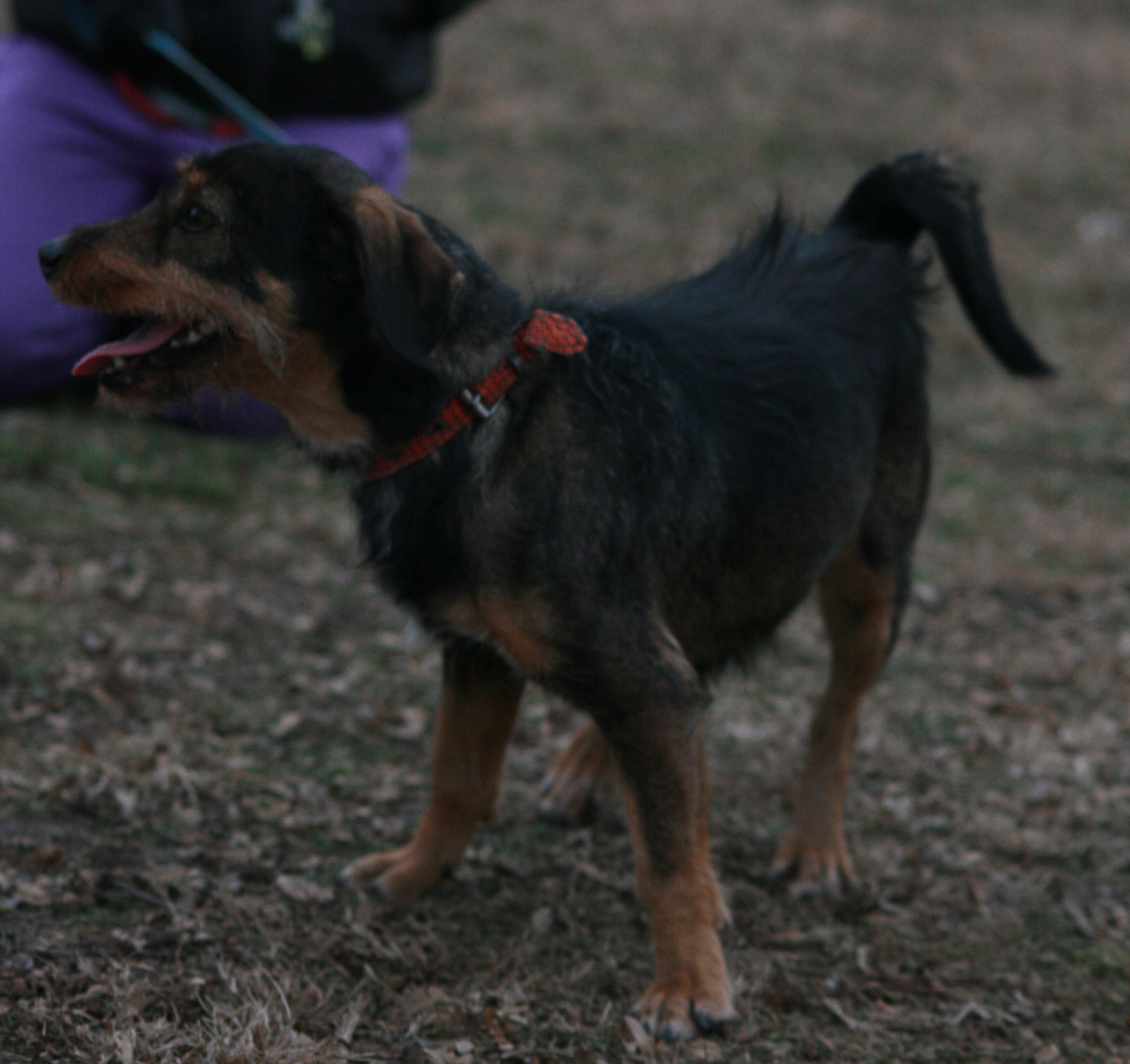 2010-ben született, ivartalanított drótszőrű tacskó keverék szuka.